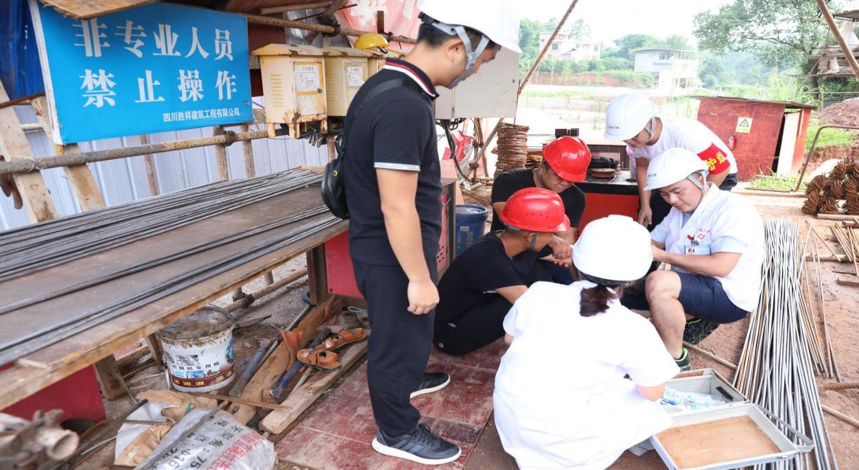 演練模擬龍掛山在建項(xiàng)目施工過程中一名鋼筋工人在鋼筋制作中手臂不慎擦劃傷,項(xiàng)目部立即進(jìn)行緊急救援。演練總體設(shè)置三項(xiàng)課時(shí),一是現(xiàn)場傷員救助,二是應(yīng)急救援的后勤保障,三是應(yīng)急救援知識(shí)的講解。