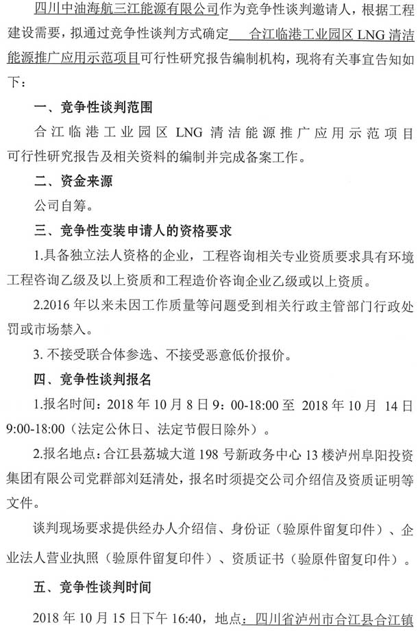 合江臨港工業(yè)園區(qū)LNG清潔能源推廣應用示范項目可行性研究報告編制單位競爭性談判公告.doc