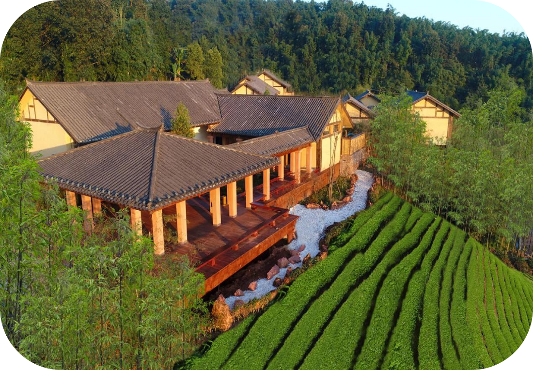 半山云舍建筑面積1246平方米,由六幢具有濃郁川南特色民居風格的吊腳小樓與竹林、茶園、水池、庭院等外部景觀組成。設有辦公區(qū)、景區(qū)規(guī)劃展示大廳、接待服務區(qū)、住宿與停車等區(qū)塊;配置有景區(qū)管理、景區(qū)招商、地產銷售、來賓接待等綜合性管理功能,其中設有1個能容納50人以上的多功能會議室,設有1個能至少容納10人以上的小會議室,配有3個以上男女廁位的公共衛(wèi)生間;建筑設計上以當地的丹霞紅石、穿斗木構等傳統(tǒng)文化因素為精神內核,在空間布局上融入落地門窗、觀景平臺等現代審美元素,匠心打造,風格鮮明。
