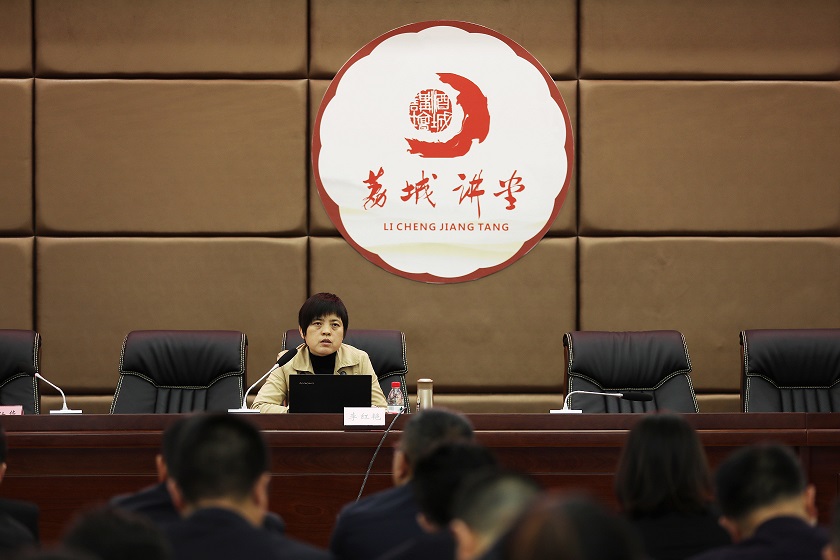 會議邀請“酒城講壇荔城講堂”講師、四川警察學院馬克思主義學院副院長、副教授李紅艷教授作《百年大黨何以風華正茂》黨史學習教育專題輔導。