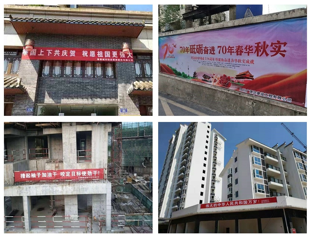 為慶祝新中國成立70周年,城投公司、廣源達(dá)公司、鑫晟公司于近日在公司項目部、售樓部等地懸掛慶祝標(biāo)語,激發(fā)群眾愛國熱情,營造良好國慶氛圍!