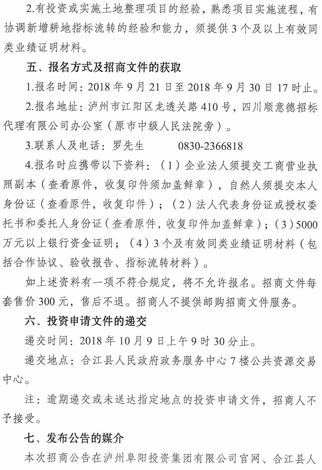 招商公告:瀘州阜陽投資集團(tuán)有限公司耕地占補(bǔ)平衡項目招商公告