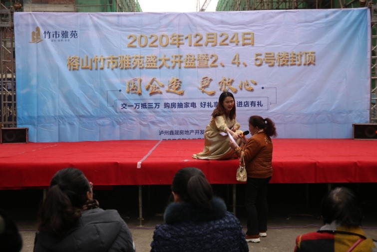 2020年12月24日上午,鑫晟地產(chǎn)公司在竹市雅苑售房部現(xiàn)場(chǎng)隆重舉行項(xiàng)目開(kāi)盤(pán)暨2、4、5號(hào)樓封頂活動(dòng)。豐富多彩的節(jié)目表演、精彩有趣的有獎(jiǎng)問(wèn)答吸引了周邊群眾觀看、參與。 此次活動(dòng)達(dá)到了很好的宣傳造勢(shì)效果,使“國(guó)企造,更放心”深入人心。